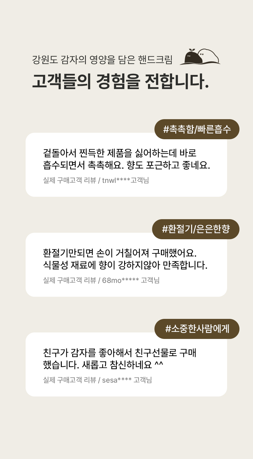 시노디아 베스트셀러 감자핸드크림! 끈적임,자극NO 촉촉한 보습감OK