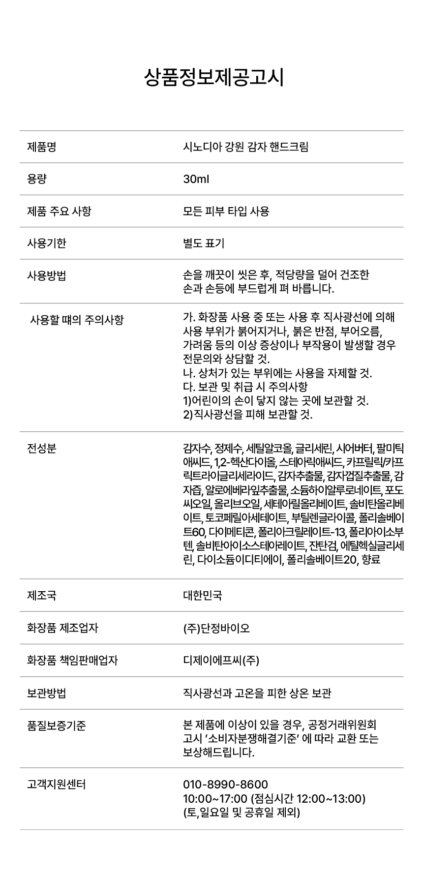 시노디아 강원 감자 핸드크림 30ml
